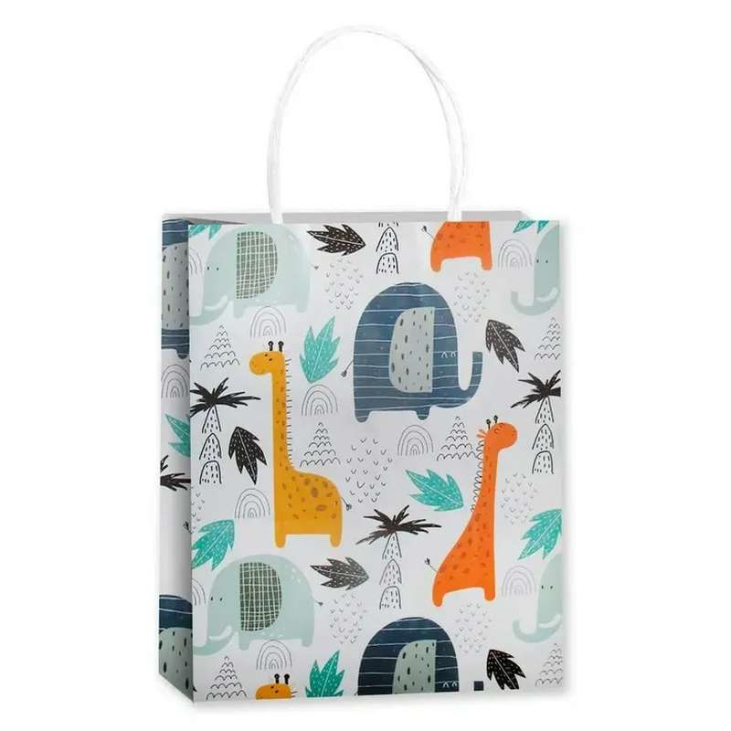 503375 Пакет подарочный, Крафт 120гр, Жирафы и слоны, 33*25,5*12,5 см, 1 шт.