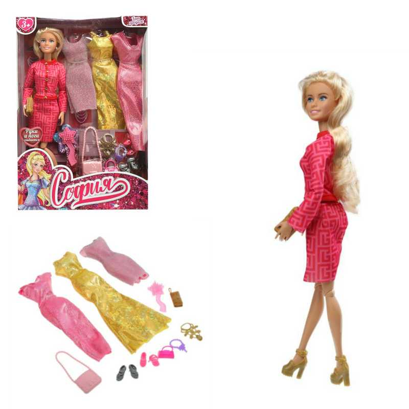 Модница София одета в элегантный розовый костюм, состоящий из жакета с длинным рукавом и юбки до колена, образ дополняют серьги-пусеты. С такой модной куклой девочке будет интересно и весело играть: благодаря тому, что руки и ноги куклы подвижны, им можно придать любое положение. У Софии длинные красивые волосы, которые хозяйка куклы сможет собирать в разнообразные причёски.