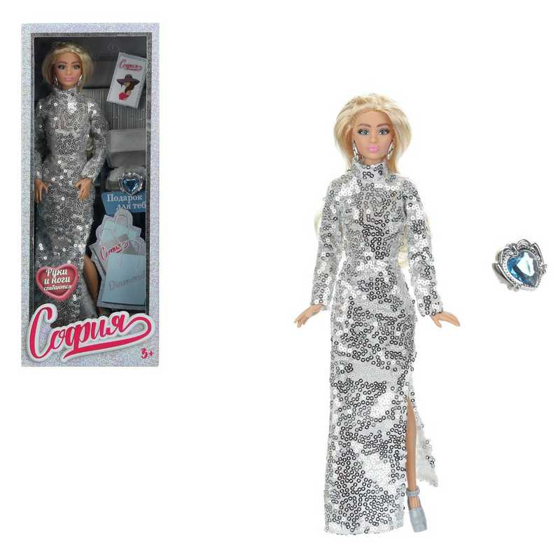 Очаровательная София одета в роскошное серебристое платье, расшитое пайетками. Одежда легко снимается и надевается. С такой модной куклой девочке будет интересно и весело играть: благодаря тому, что руки и ноги куклы подвижны, им можно придать любое положение. У Софии длинные красивые волосы, которые хозяйка куклы сможет заплетать в разные причёски. Детально проработанный дизайн игрушки вдохновит девочку на множество увлекательных игровых сюжетов.