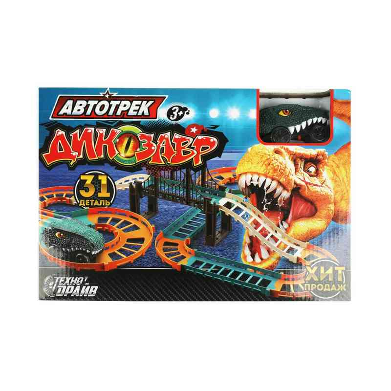 2201B0126-R Автотрек динозавр, на бат., кор.45*30*10см