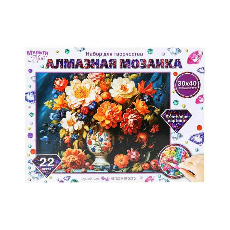 Алмазная мозаика 30*40 см полн заполн подрамник цветы