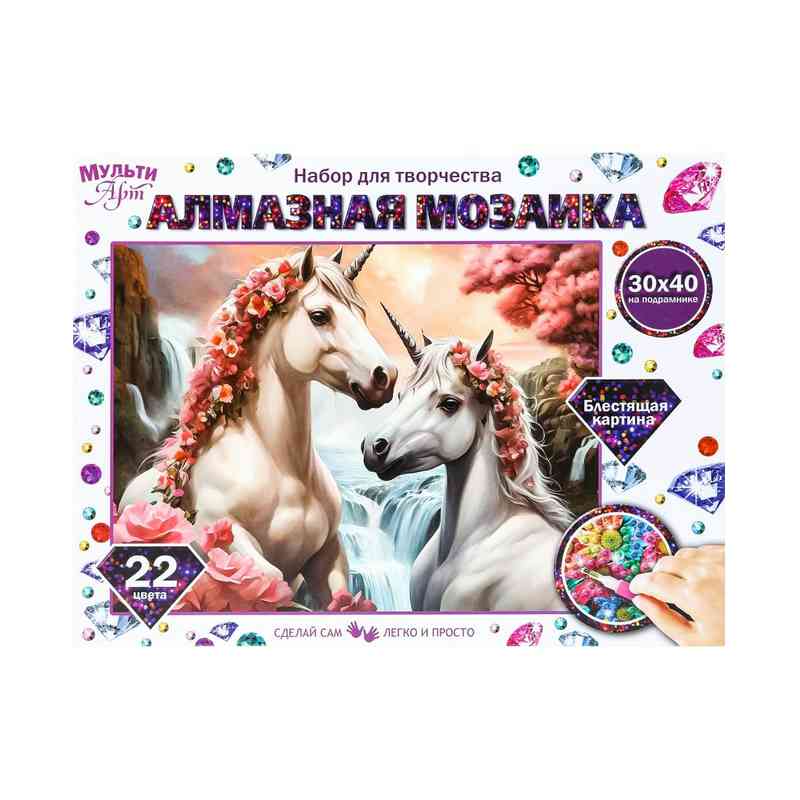 Алмазная мозаика 30*40 с подрамником волшебные единороги