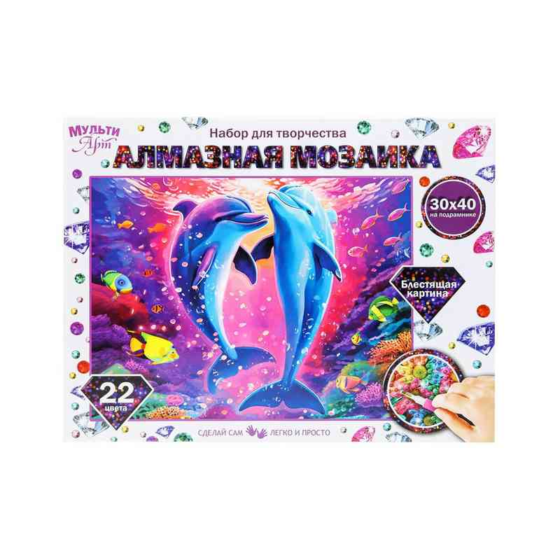 Алмазная мозаика 30*40 с подрамником дельфины