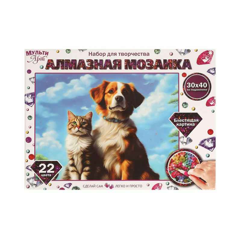 Алмазная мозаика 30*40 см с подрамником котик и собака