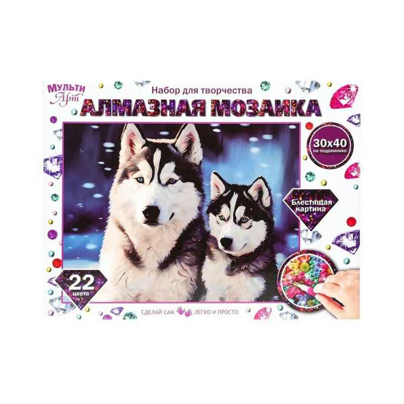Алмазная мозаика 30*40 см с подрамником хаски