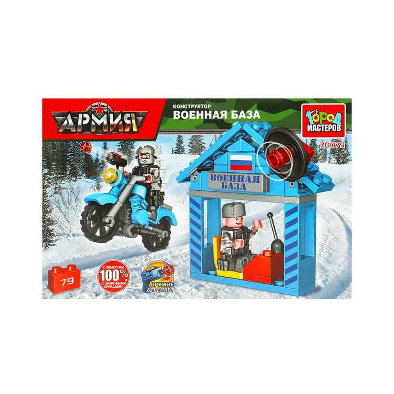 70079-KK Конструктор ВОЕННАЯ БАЗА с мотоциклистом, 79 дет