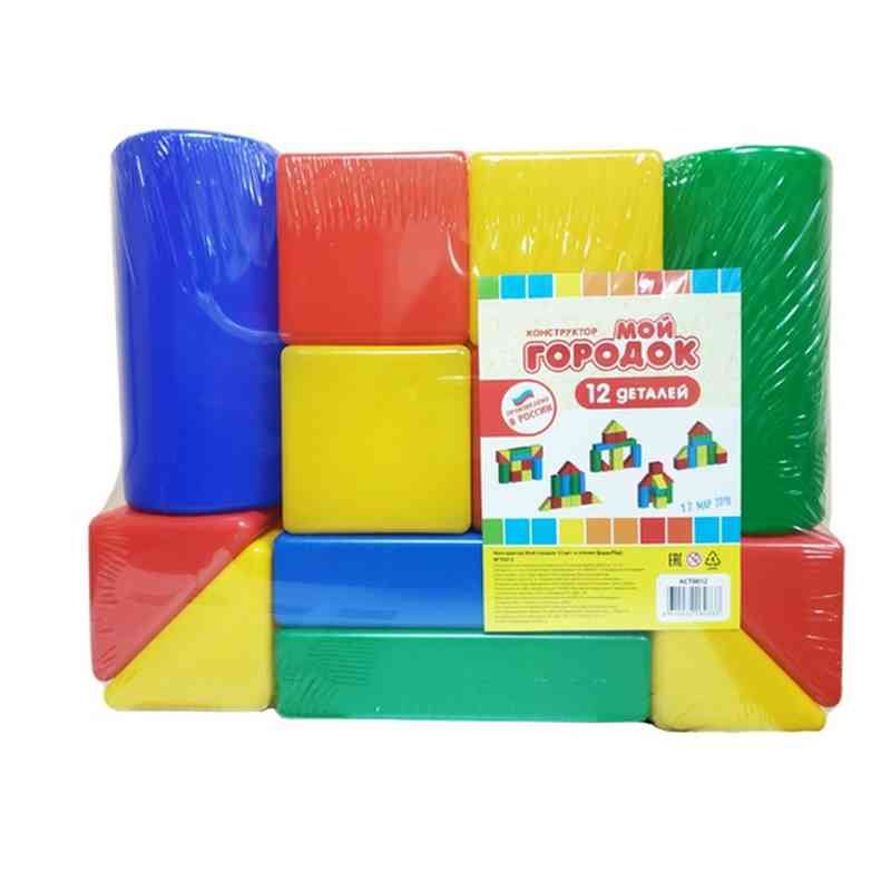 Конструктор Затейники Мой городок КСТ0012 создан специально для детей в возрасте от 1 до 3 лет. В него входят только большие детали, изготовленные из экологически чистых материалов и не содержащие острых граней. С ним малыш может строить красочные здания – жилые дома, сказочные замки и фабрики по производству сладостей. Он будет развивать воображение, а также тренировать мелкую моторику рук и координацию движений.