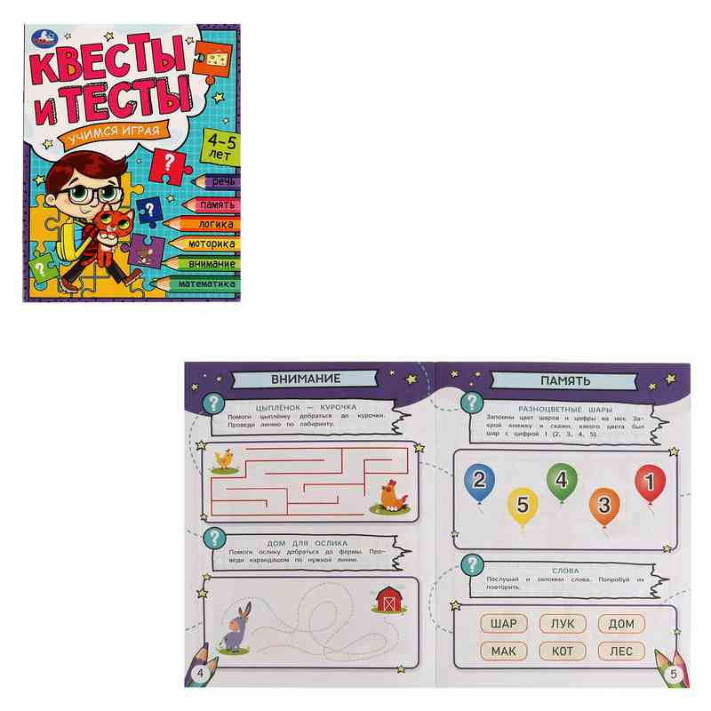 Брошюра «Квесты и тесты, 4-5 лет. Учимся играя» ТМ «УМка» непременно понравится маленьким любознайкам: