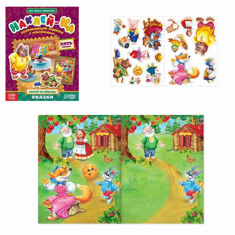 Обучающая книга с наклейками “Сказки” 12 страниц 14,5*19 см 2221327
