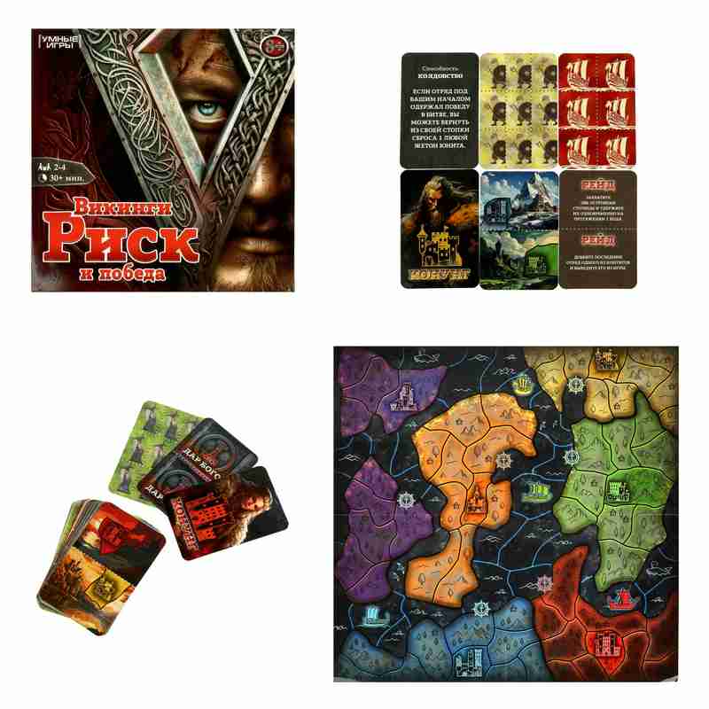 Викинги:Риск и победа.Настольная игра-ходилка квадрат.40карточек.250х250х55мм