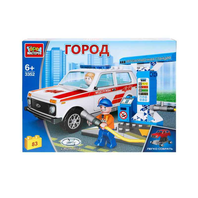 3352-KK LADA конструктор лада нива на заправочной станции, 83 дет