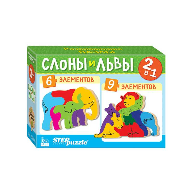 69005 Мозаика "puzzle" 2в1 из дерева "Слоны и львы" (IQ step)