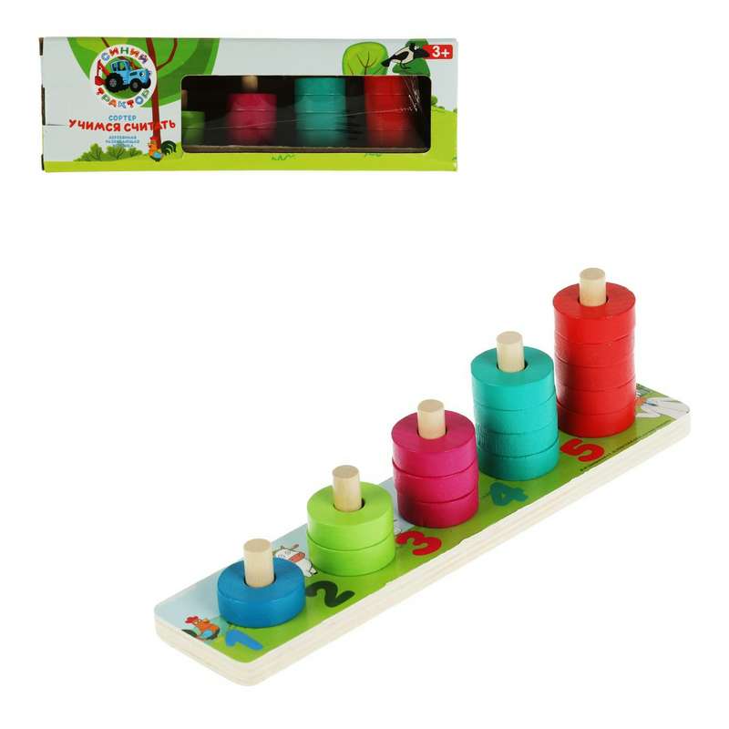 W031-STR Сортер "учимся считать" СИНИЙ ТРАКТОР 22*0.9*5 см