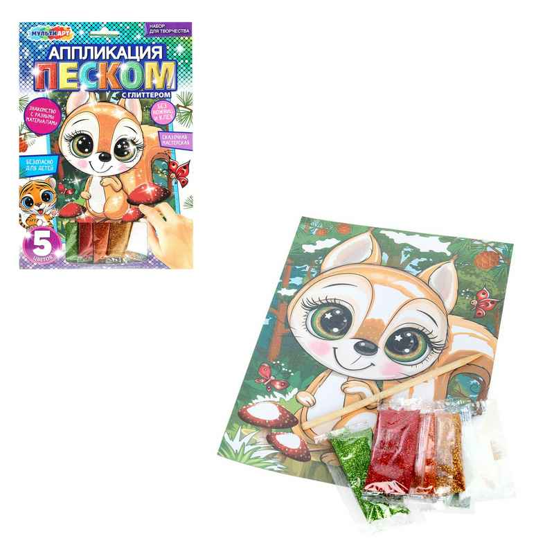 SANDGL-111453 Аппликация песком c глиттером 17*23 см белочка