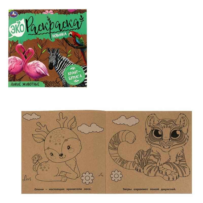 Дикие животные. Эко-раскраска 200х200 мм, Крафт-бумага. 8 стр., 2+2
